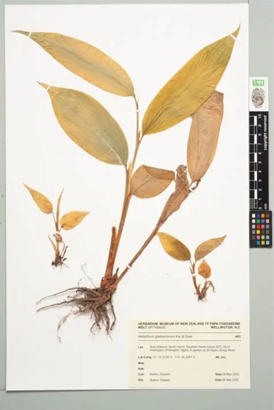 在模式标本与种下分类层面,研究同样给出了确凿结论。英国自然历史博物馆馆藏的 BM00057469 号标本 于 1815 年采集,是红丝姜花现存最早的干燥标本; 1824 年随学名发表的插图为该种的主模式。同时,红丝姜花可划分为两个地理变种:产自 尼泊尔加德满都谷地( Kathmandu Valley, Nepal ) 的 原变种( var. gardnerianum ) ,以及产自 印度卡西丘陵( Khasi Hills, India ) 的 美丽变种( var. speciosum (Wall.) Horan. ) ,后者的模式标本正是 BM00057469 。这一划分既符合地理隔离的演化规律,也厘清了过去种下等级归类的混乱。