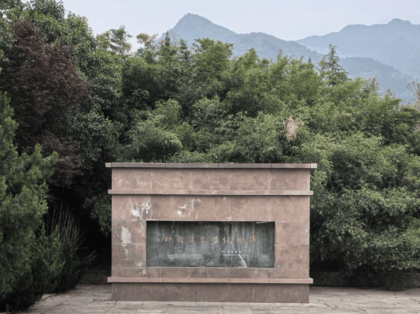 在龙潭堡村前的开阔地带,坐落着庄严肃穆的杨松轩杨钟健纪念园,这是华州为纪念杨氏父子,传承其精神所建,也是此次考察的核心地点。纪念园背依秦岭,面临渭水,选址开阔,氛围清幽,整体布局对称规整,以杨松轩先生墓为中心,四周石碑林立,松柏常青,营造出庄重肃穆、缅怀先贤的氛围。