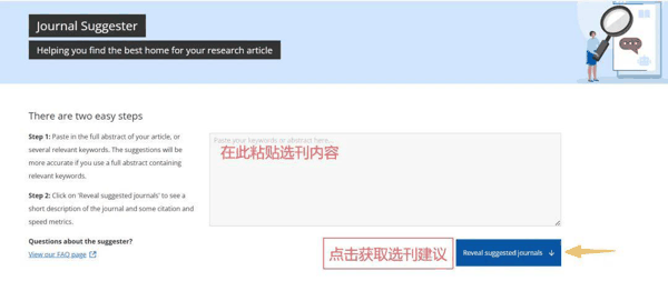 🌟作者只需要将文章的摘要粘贴在文本框中,然后点击 “Reveal Suggested Journals”,即可获得系统根据摘要内容,为您甄选的期刊!