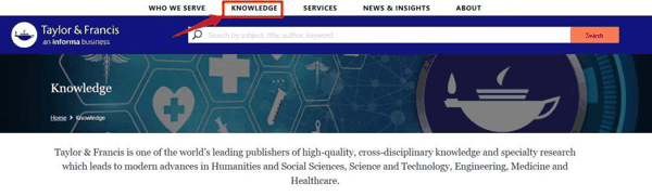Taylor & Francis网站的Knowledge板块比较适合对某一领域期刊处于初期调研阶段的学者,该网站能够提供Taylor & Francis在某一领域中的精品期刊和图书,帮助学者们节省了许多调研时间!