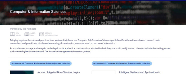 另外,在简介上方还会明确标识出在该领域下Taylor & Francis旗下拥有的期刊、图书以及经过同行评审的学术文章数目。