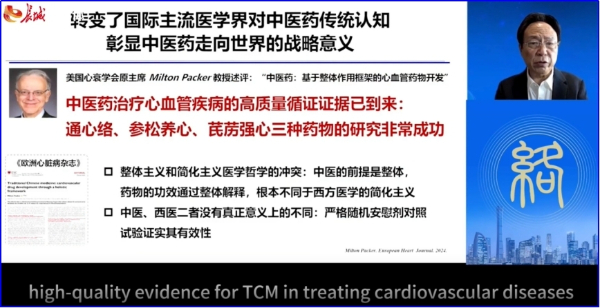 中国工程院院士张运以《传统中医药在动脉粥样硬化心血管疾病防治中的证据与作用》为题作学术报告。张运表示,通过对中医药发展史进行回顾,发现部分中药能有效控制高血压、血脂异常、糖尿病、糖尿病前期等心血管危险因素,并对动脉粥样硬化性心血管疾病与慢性心力衰竭产生有益作用。部分中药活性成分的药理作用及其作用机制已被阐明,如通心络组方中的人参是其保护内皮改善微血管功能的物质基础,中西医结合为系统干预心血管事件链提供了有力的武器。