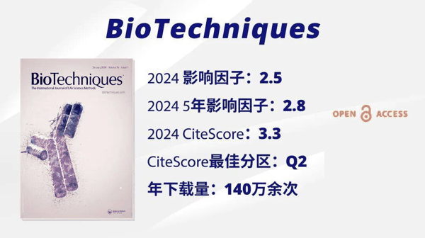 本期刊•见为诸位介绍一本聚焦生命科学评论的开放获取期刊— BioTechniques🔗 。除了对关键指标进行详尽解读外,还向您推荐刊内近三年高被引文章,以及近一年高阅读量文章: