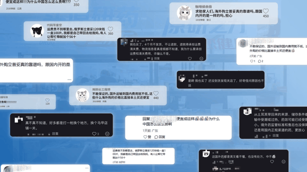 3月下旬,小红书等社交平台有关海淘购药帖子的用户评论(吴起龙制图)