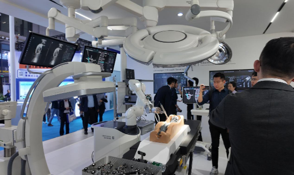 同样的系统化思路,也出现在手术机器人领域。微创在本届CMEF推出的支气管肺癌早诊机器人,通过术前影像构建导航路径,引导直径约4毫米的管道深入肺部细支气管完成活检;操作端采用类似游戏手柄的设计,显著降低医生学习门槛。