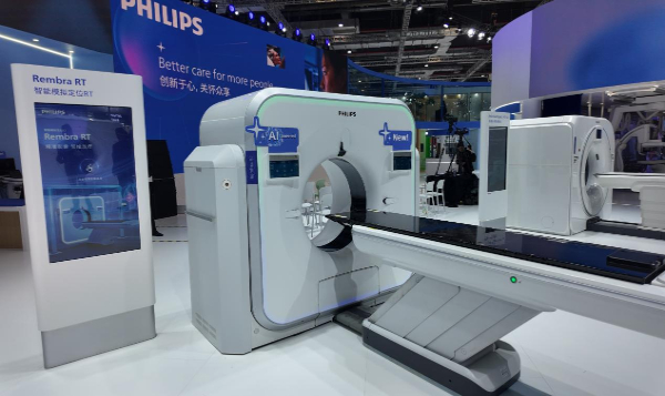 第93届CMEF现场,飞利浦展示其Rembra RT 智能模拟定位CT1。新华网逦琛 摄