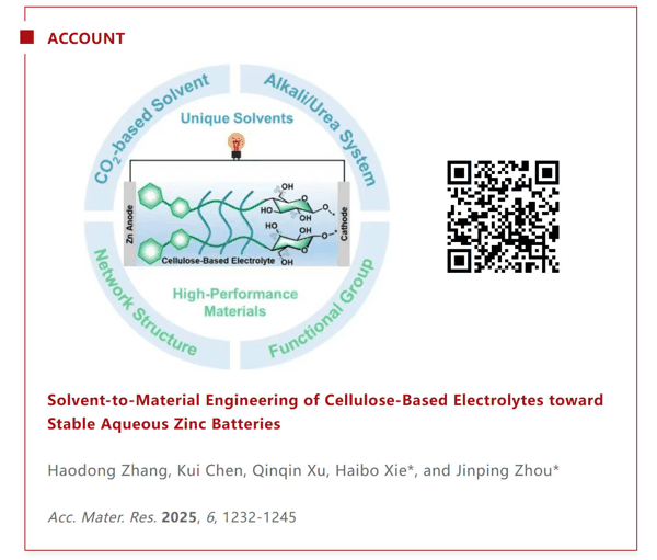 武汉大学 周金平 教授团队和贵州大学 谢海波 教授团队系统总结课题组前期在纤维素绿色溶剂(包括碱/尿素水溶液及CO 2 基溶解体系)方面的研究成果,阐明其组成特点与溶解机制。随后讨论如何通过溶剂工程策略实现纤维素高效溶解与功能化修饰的方法与原理,并探讨以此制备的纤维素基电解质在水系锌电池中的应用现状、面临挑战及未来发展方向。