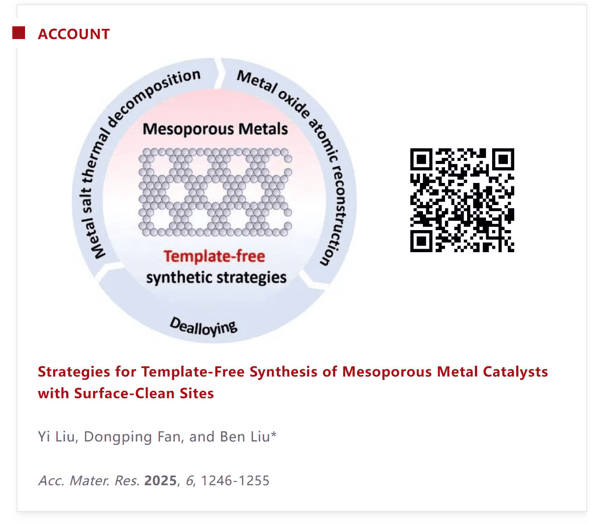 四川大学 刘犇 教授团队系统总结了目前开发的三种无模板合成策略,阐述了其在构建表面清洁、高活性介孔金属催化剂方面的机制与优势,并展望了其在能源催化与碳中和领域的应用前景。