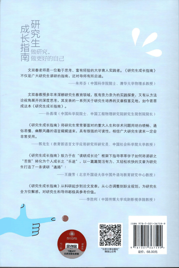 其一,本书更加关注或系统性关注研究生成长的基本问题。具体说,更关注 “战略”而非“战术”层面的问题,更关注方向而非方法层面的问题,更关注成长而非成功问题。