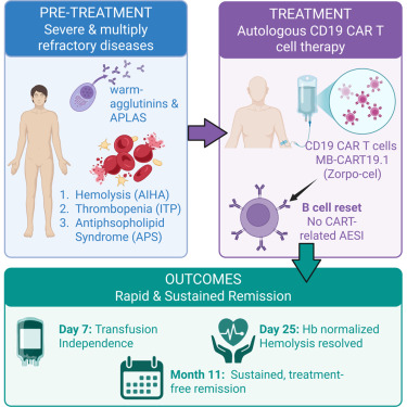鉴于所有常规疗法均已失效,医疗团队决定尝试CAR-T疗法。团队认为,患者体内功能失调的B细胞很可能是驱动这三种自身免疫疾病的关键因素。