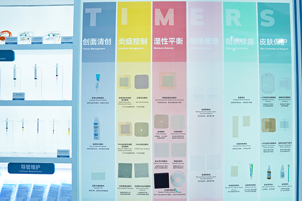 在术后护理板块,企业重点展示了TIMERS功能性伤口处理方案。术后伤口护理历来是临床护理的“老大难”,因为伤口的类型复杂、渗液难控、感染风险高,且不同护理阶段没有统一标准。稳健医疗在国际TIME原则的基础上推出了TIMERS伤口护理方案。以创面全周期管理为核心,覆盖从清创到皮肤保护各环节,实现对不同愈合阶段需求的精准匹配,助力提升创面愈合效率与康复质量。