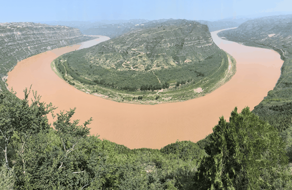 路上经过“东征”村,也有东征纪念馆。 1936 年,中国工农红军东渡黄河,进入山西境内作战,在永和留下了宝贵的史迹。行驶约半小时后,我们抵达乾坤湾地质公园。站在瞭望台上,眼前的景象令人震撼:黄河形成连续的巨大“ S ”形蛇曲,一共有七个湾,三叠系的岩层被切割得非常陡立,但其上没有晚中新世红土。两岸群山巍峨挺拔,黄河水奔腾不息,浑浊的河水带着黄土高原的厚重与沧桑,蜿蜒向前。灿烂的阳光洒在河面上,河水泛着金色的波浪,与两岸的绿树、黄土构成了一幅壮丽的画卷。我们去了地质公园内的博物馆,内容相当丰富,以地质知识为主,也有考古的文物,特别是一组青铜器异常精美。不过,博物馆也存在败笔,将巨型的山西山西鳄( Shansisuchus shansisuchus )的复原骨架说成是小型的桑壁永和鳄( Yonghesuchus sangbiensis )。