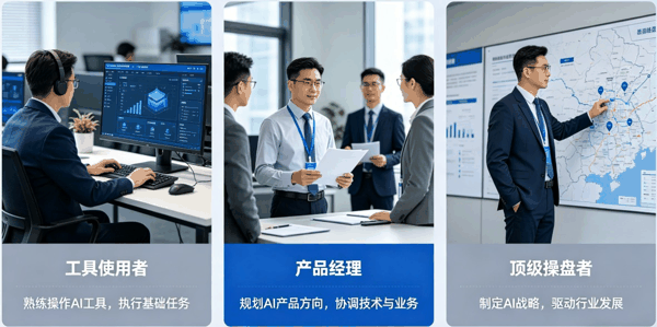 AI工具的使用者:能写好提示词,用AI生成文案、图片、视频、简单代码。这个层次只需要基本的表达和逻辑能力,任何人经过短期训练都能掌握,和专业背景几乎无关。